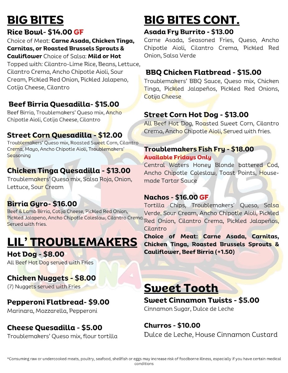 In conclusion, TROUBLEMAKERS' COCINA is a must-visit for anyone looking to indulge in bold culinary adventures. Whether you're enjoying a meal in their vibrant location or experiencing their exceptional catering, this brand promises to make each outing a delicious and memorable affair. Come hungry, leave happy, and prepare for the delightful chaos that is TROUBLEMAKERS' COCINA.