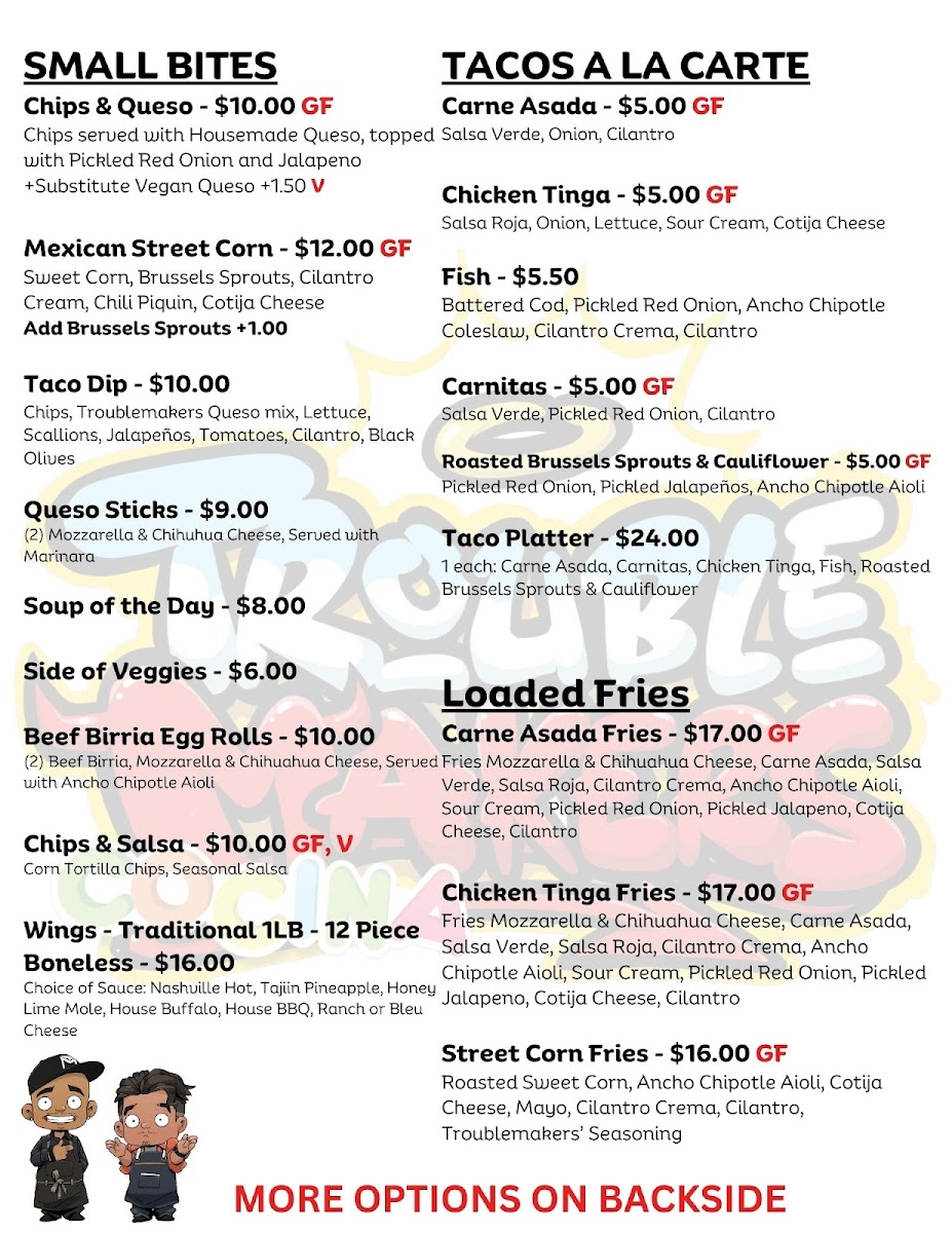 The friendly, attentive staff enhances the dining experience, ensuring every visit is memorable. With consistently bold and beautifully presented dishes, TROUBLEMAKERS' COCINA is the ideal destination either for a casual meal or a special event. Explore the culinary delights that have earned glowing reviews from food enthusiasts and event coordinators alike!